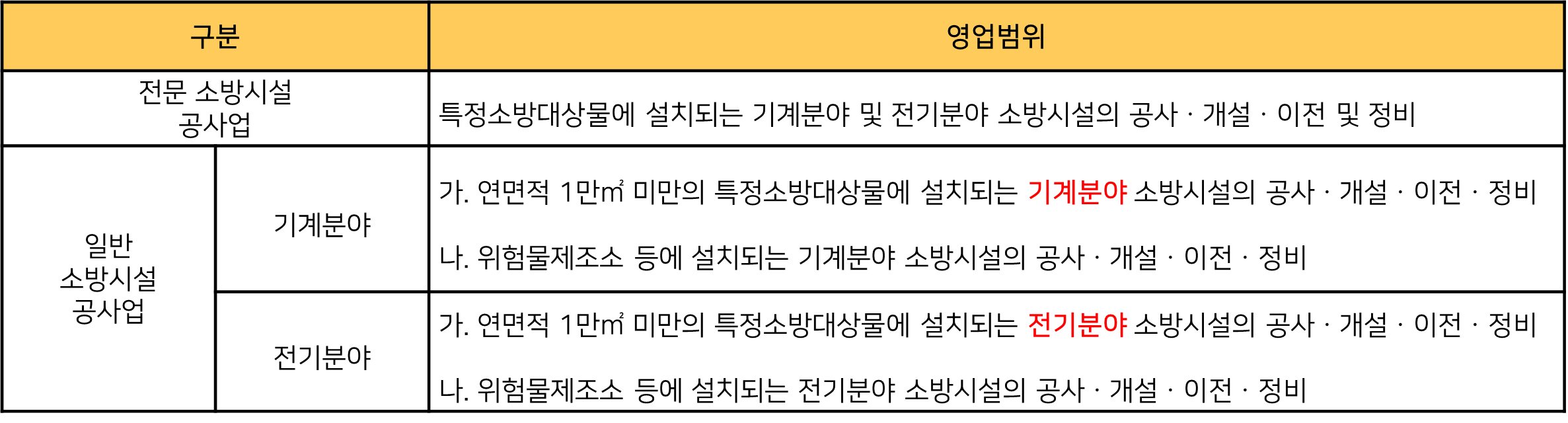 일반소방시설공사업은 기계분야와 전기분야로 나뉩니다.